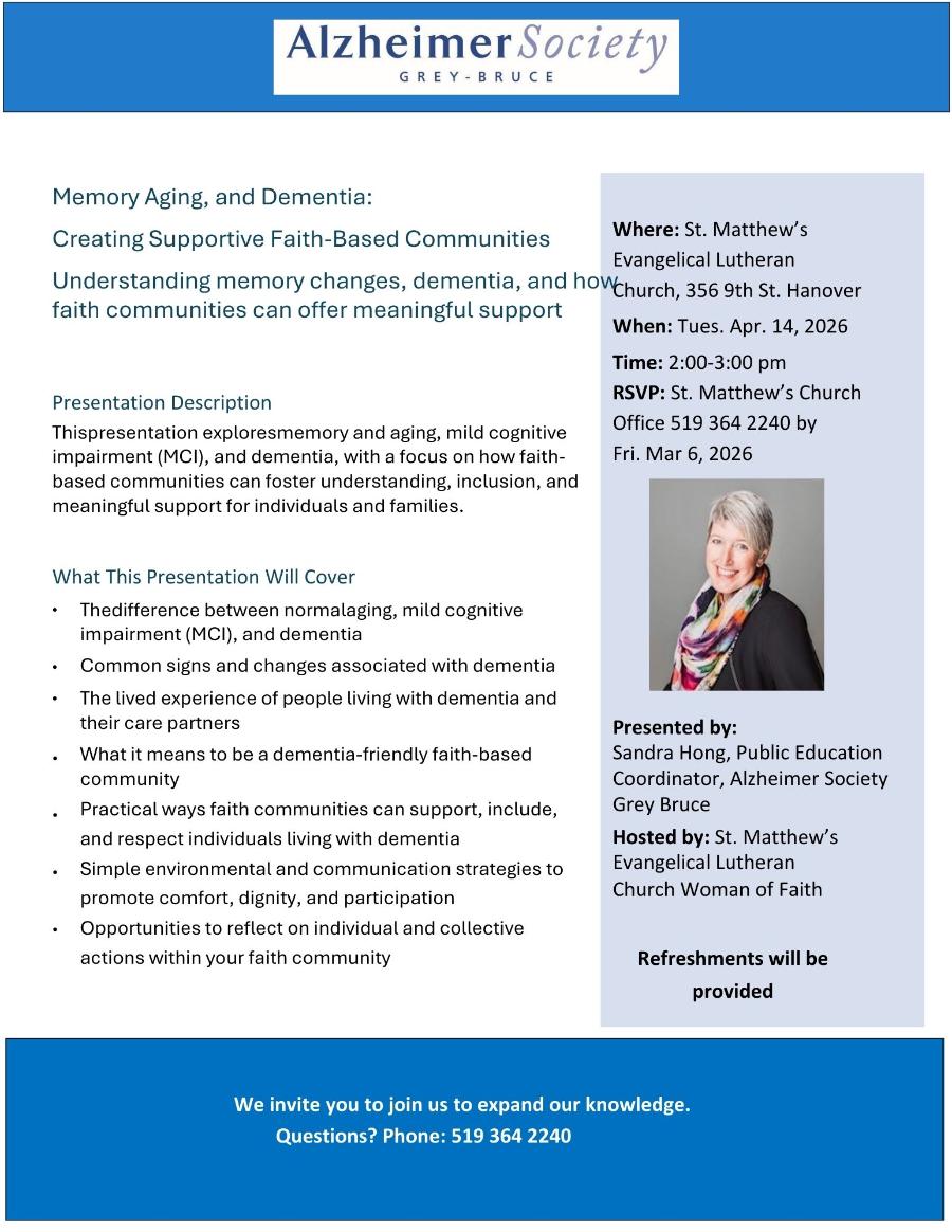 Tuesdays at 2:00pm Women of Faith: open to all women, gather in the church parlour.